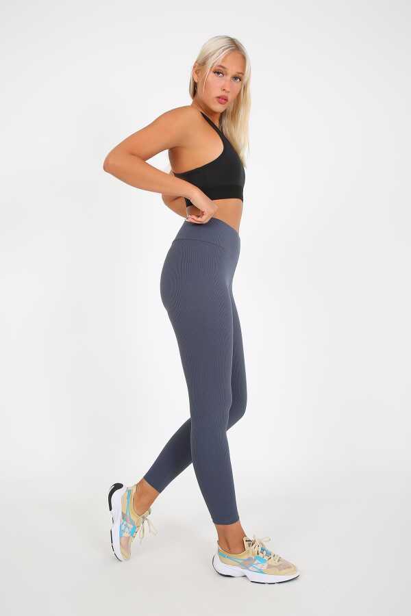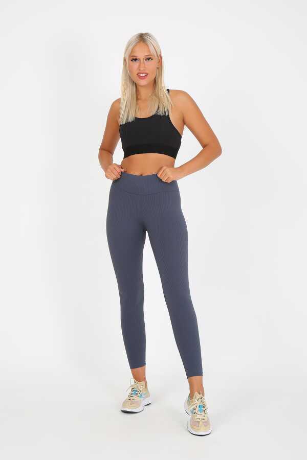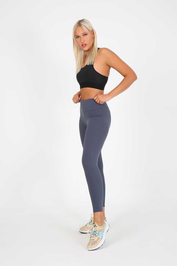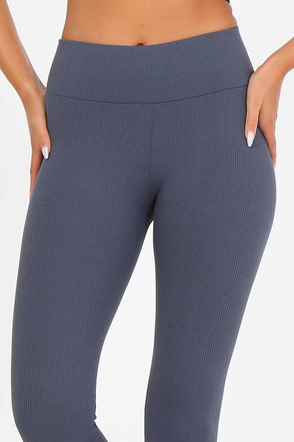 AuraFit ART-4102 Yüksek Bel Fitilli Toparlayıcı İnterlok Beli Kalın Lastikli Kadın Örme Tayt